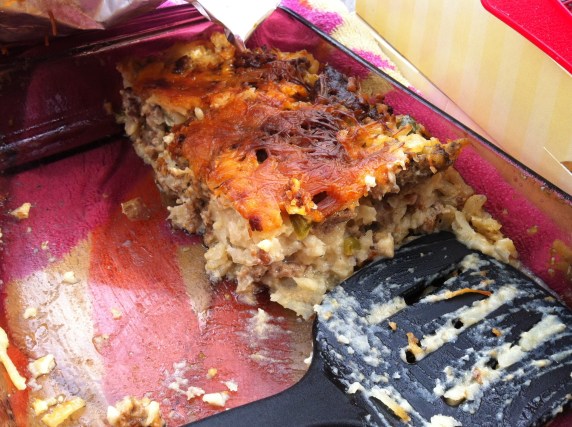 So when I make these next year, someone remind me to not only put the cheese in the casseroles but to put some on top as well. And to brown the sausage. And to not cut off my fingers.