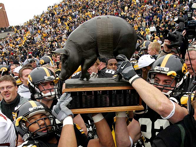 However. Over the weekend, I began to reconsider the third part of the re-naming equation, which stated that Ohio State plays in the Pork Division. It was the notion that Minnesota and Iowa, both members of the other division, play annually for the Floyd of Rosedale Trophy, pictured above. I thought about Wisconsin, a member of our division, and its reputation for dairy farming. I thought about the pastures that dot northwest Columbus, all owned by Ohio State, and the hundreds of cattle that peer through those fences at traffic on Kenny and Sawmill roads.